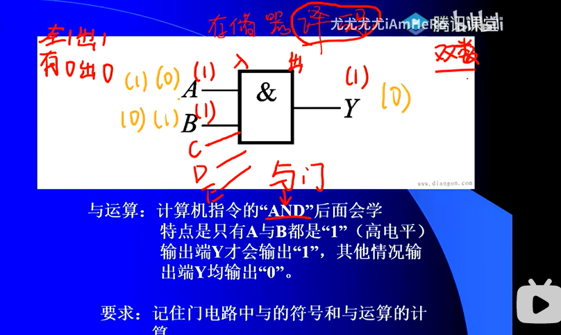 1.与门,与逻辑运算:全1出1,有0出0,输入端可以接多个,但最好是双数,当输入端全是1的时候,存储器译码唯一,
