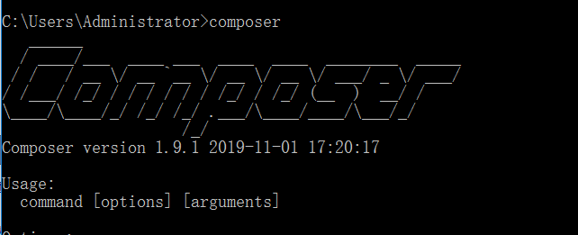 打开windows命令提示符(cmd)输入composer,效果如下则安装成功: