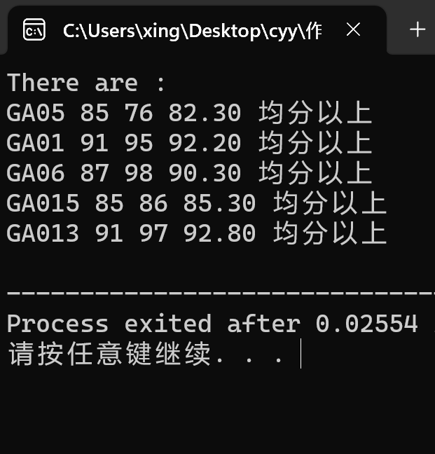 // 输出均分以上学生记录