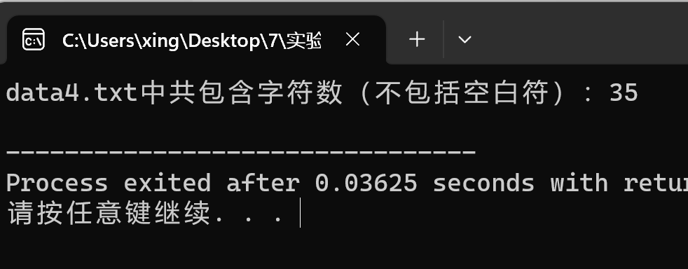 printf("data4.txt中共包含字符数(不包括空白符):%d\n", i);