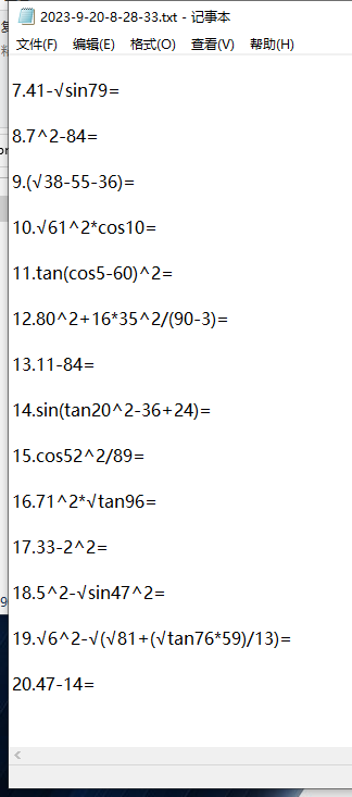 5、生成的题目将以“年-月-日-时-分-秒.txt”的形式保存,每个账号一个文件夹。每道题目有题号,每题之间空一行;