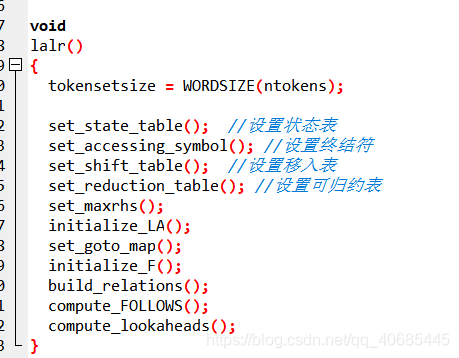 lalr()目的是要获取向前看符号即FOLLOW函数的结果加入到DFA中
