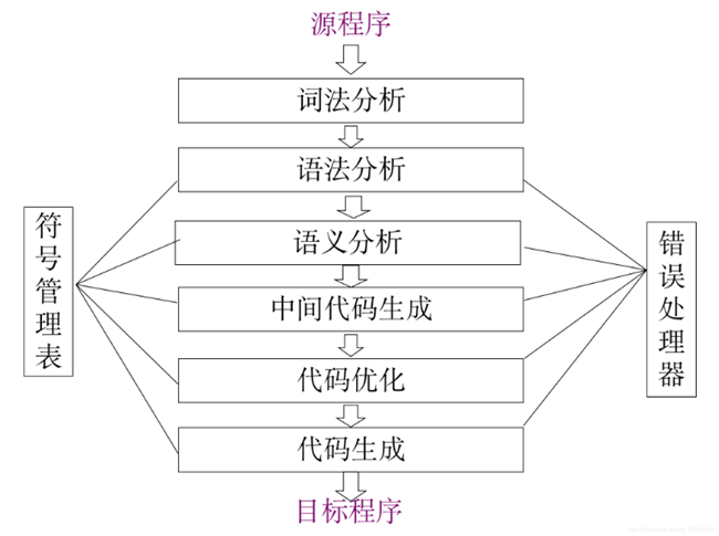 这就是整个编译器需要做的工作。即对每一个目标语言的源代码需要进行这些工作,使得高级程序语言变成了一个目标机器能够听得懂然后去执行的语言。