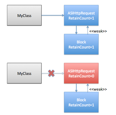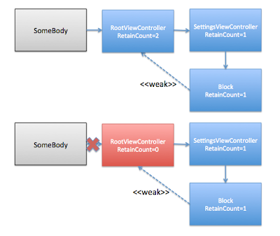__block MyClass* temp = …; // MRC環境下使用 __weak MyClass* temp = …; // ARC但只支援iOS5.0以上的版本 __unsafe_retained MyClass* temp = …; //ARC且可以相容4.x以後的版本
