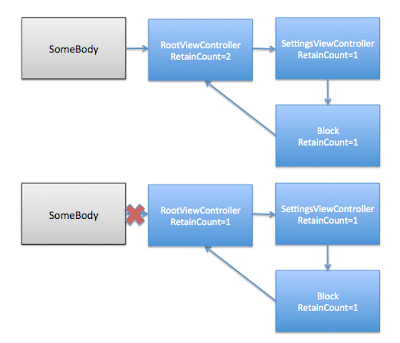 我建議要解決retain cycle的最好思維就是想清楚從屬關係