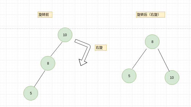 //右旋 /* x y * * y d ----------> z x * * z c a b c d * * a b */ public Node rightRotate(Node x) { Node y=x.left; Node c=y.right; y.right=x; x.left=c; //更新树的高度 添加节点的时候每个节点的高度会自动刷新(递归调用),保证下面顺序,先计算子节点高度 x.height=Math.max(getHeight(x.left),getHeight(x.right))+1; y.height=Math.max(getHeight(y.left),getHeight(y.right))+1; return y; }