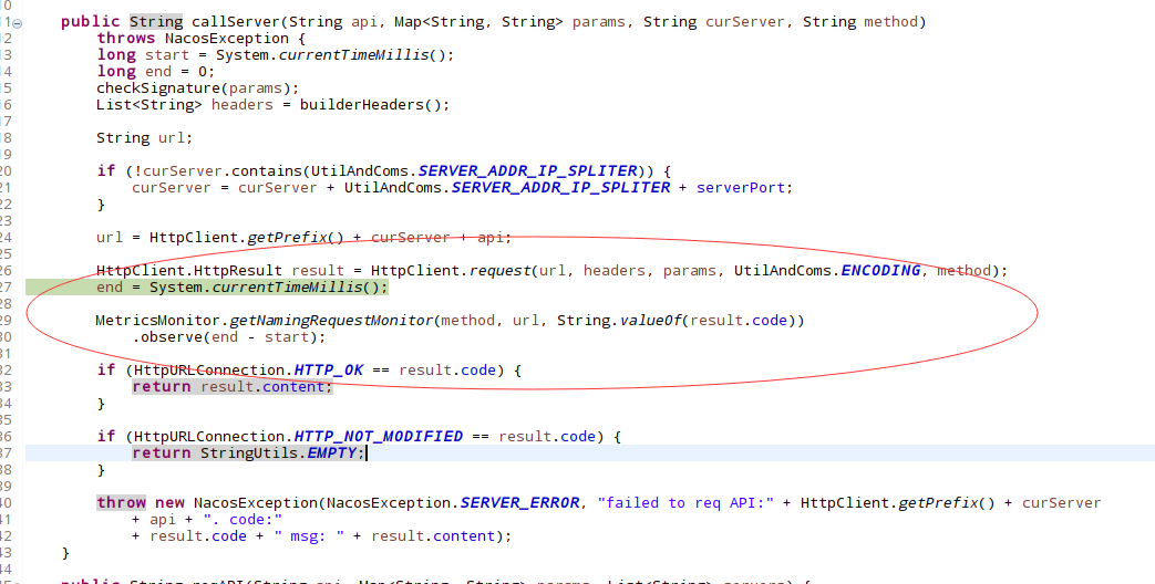 掉过部分代码(参数封装) 接着把服务注册到注册中心NamingProxy中调用,可以看到url是注册中心地址http://localhost:8848/nacos/v1/ns/instance/beat