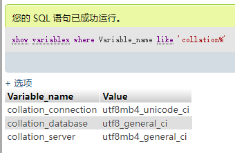 show variables where Variable_name like 'collation%';