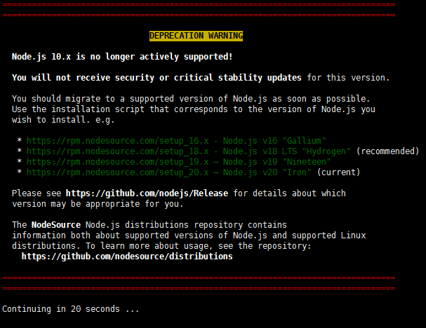 curl -sL https://rpm.nodesource.com/setup_10.x | sudo bash -