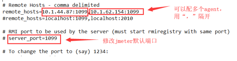 1. 打开 controller 的配置文件 jmeter.properties 找到 remote_hosts ,把刚才第二个步骤的 ip 配进去