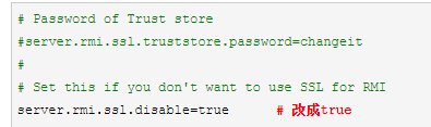 2. 打开 controller 的配置文件 jmeter.properties ,找到 server.rmi.ssl.disable=false 改成 true (此处 controller 也需要修改,不然会报错 )