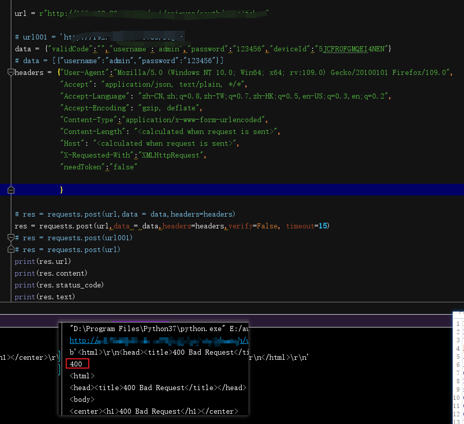 requests.post()调用就会返回400