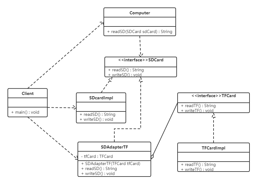 实现关系是接口与实现类之间的关系。在这种关系中,类实现了接口,类中的操作实现了接口中所声明的所有的抽象操作。
