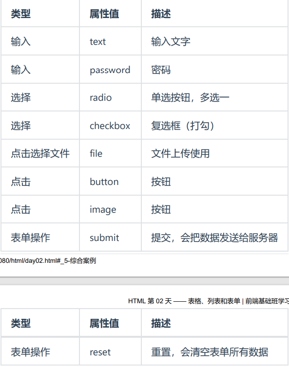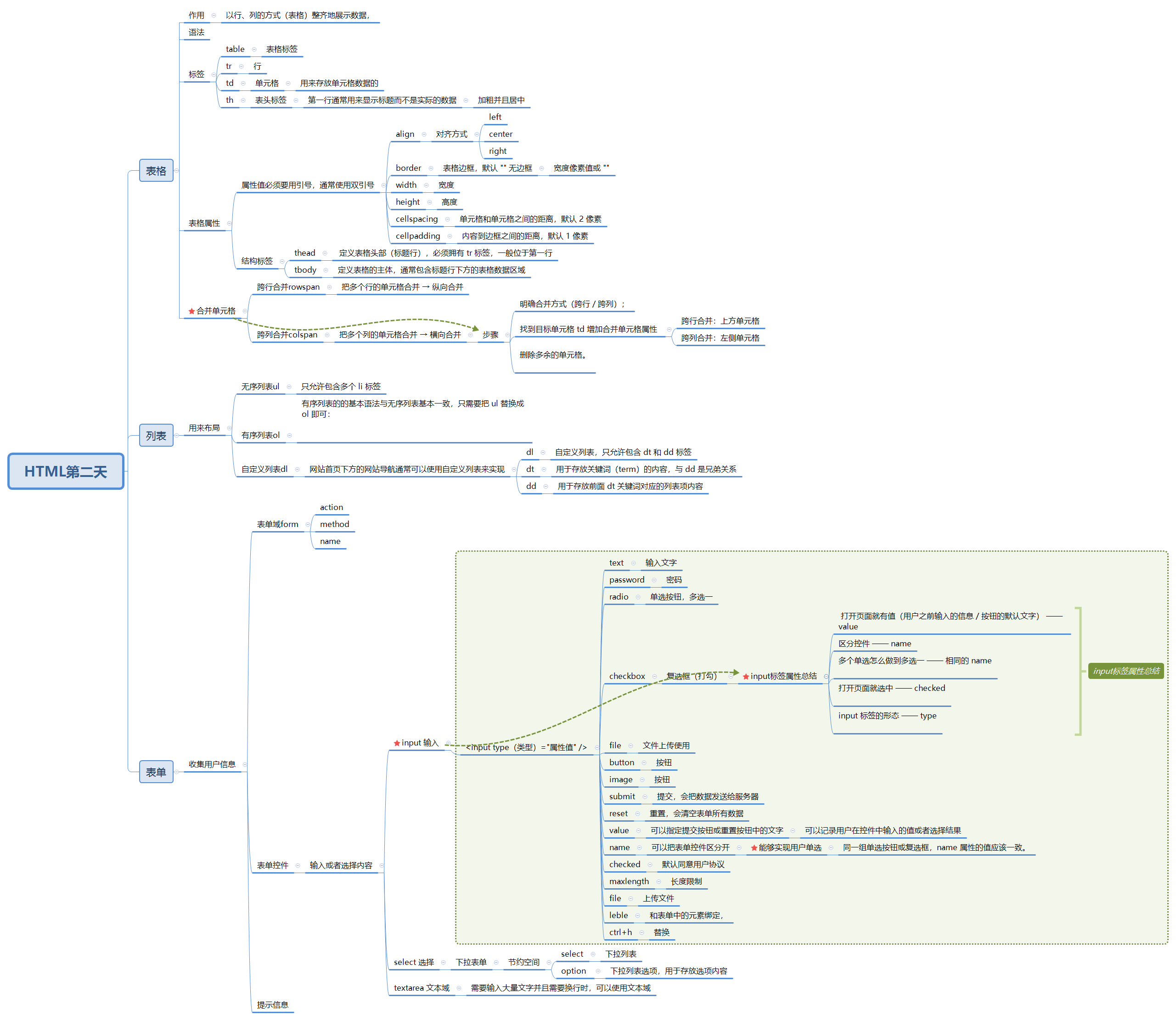 今天是HTML第二天,主要讲了表格、列表及表单的用法!