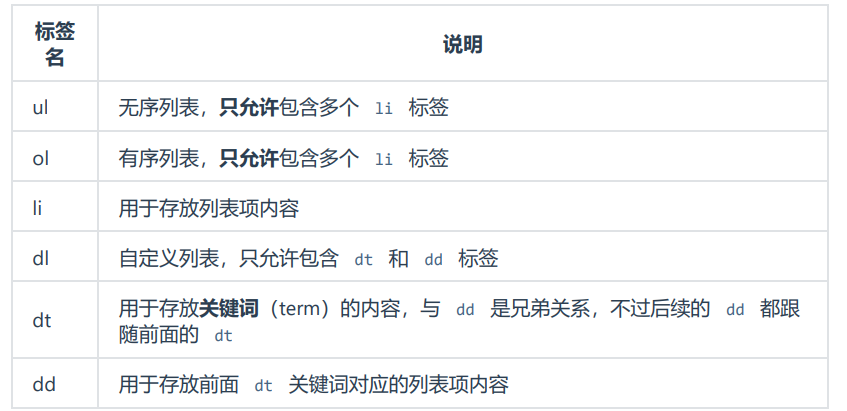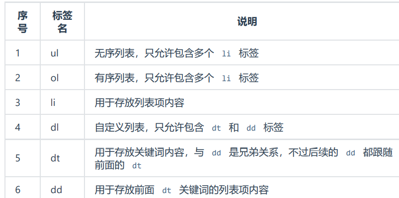 1)无序列表(ul):无序列表,只允许包含多个 li 标签