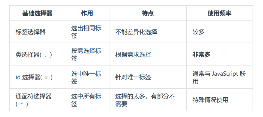 基础选择器总结: