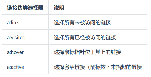 4)链接伪类选择器:针对链接的不同状态设置不同的样式