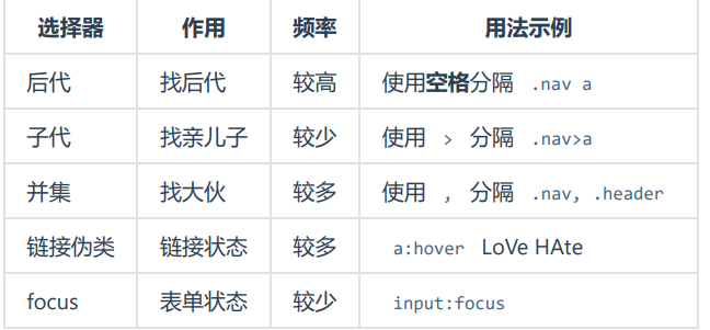 1)后代选择器:可以选择父元素中的子元素--用空格分开