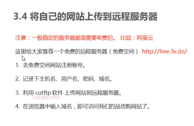 4)远程服务器:本地服务器主要在局域网中访问,如果想要在互联网中访问,可以把品优购网站上传到远程服务器。
