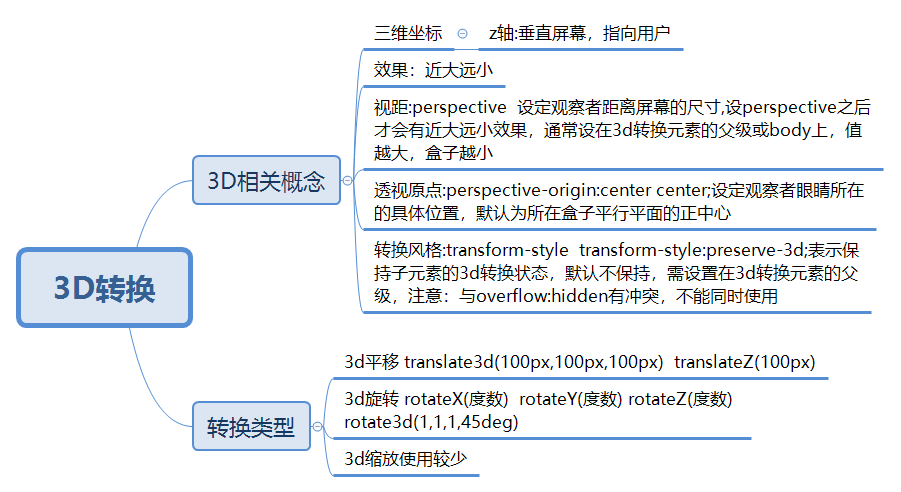 1)3D 旋转指可以让元素在三维平面内沿着 x 轴、y 轴、z 轴 或者自定义轴进行旋转