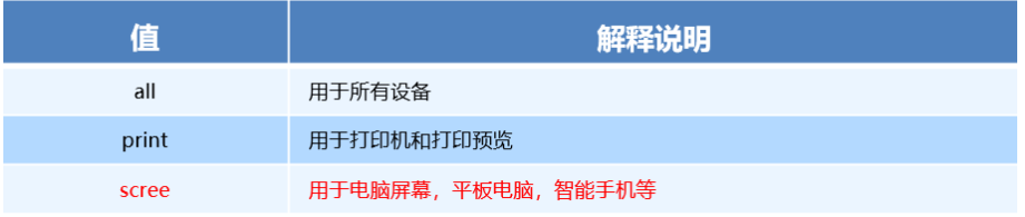 (3)only:指定某个特定的媒体类型,可以省略。