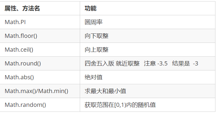Math 对象不是构造函数,它具有数学常数和函数的属性和方法 。跟数学相关的运算(求绝对值,取整、最大值等)可以使用 Math 中的成员。