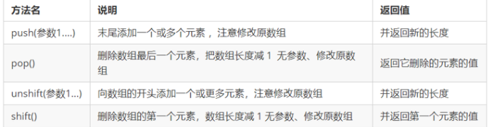 注意:push、unshift为增加元素方法;pop、shift为删除元素的方法