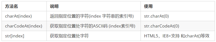 (1)字符串通过基本包装类型可以调用部分方法来操作字符串,以下是根据位置返回指定位置上的字符: