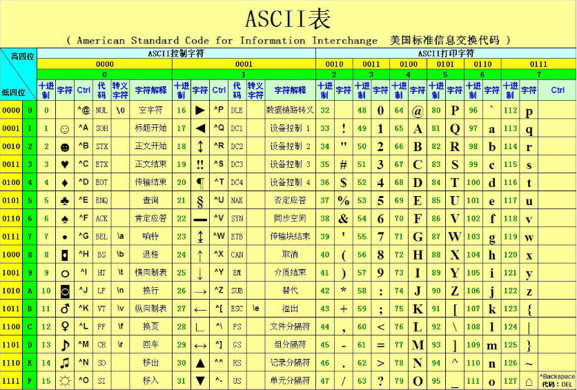 (2)在上述方法中,charCodeAt方法返回的是指定位置上字符对应的ASCII码,ASCII码对照表如下: