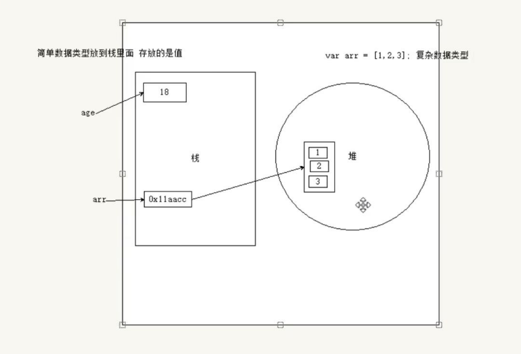复杂数据类型(引用类型):在存储时变量中存储的仅仅是地址(引用),通过 new 关键字创建的对象(系统对象、自定义对象) ,如 Object、Array、Date等;