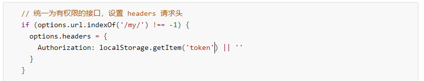 (1)在 baseAPI的 ajaxPrefilter 中添加如下代码