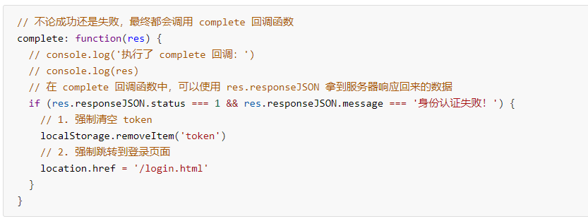 (2)在回调里面判断 服务器返回的的状态是否等于 1,并且错误的信息是 "身份认证失败",如果成立,那么就强制用户跳转到登录页