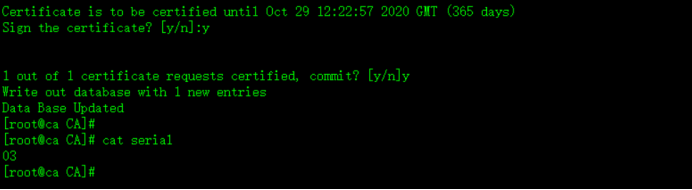 ls newcerts/ 或者查看cat /etc/pki/CA/certs/httpd.crt --查看签证文件