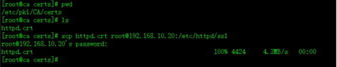 scp certs/httpd.crt 192.168.10.20:/etc/httpd/ssl