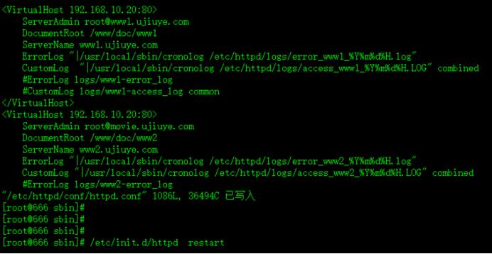 如果需要配置几个虚拟主机的日志,首先 复制www1为 www2 然后修改2的配置文件