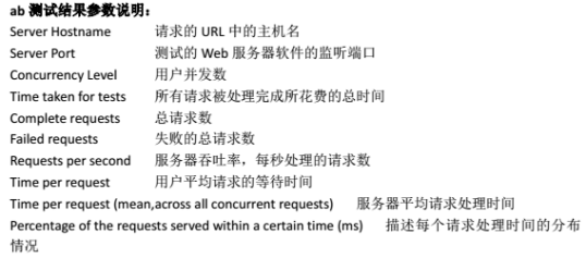 Time taken for tests: 0.159 seconds--所有请求被处理完成的时间