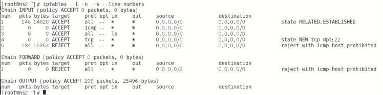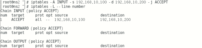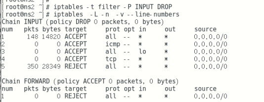 iptables -v -L -n --line-numbers --查看默认filter表上 的所有链的信息