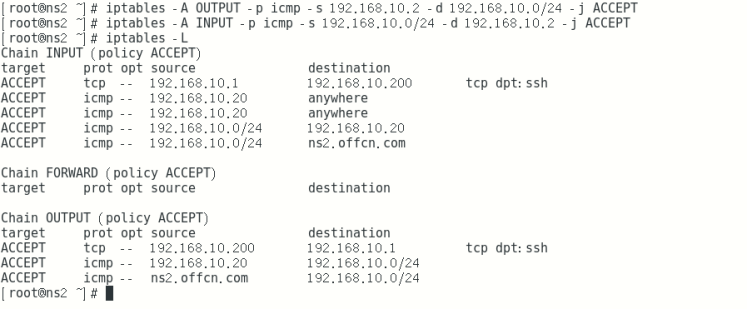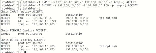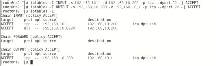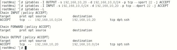 iptables -I INPUT -s 192.168.10.0/24 -d 192.168.10.20 -p tcp --dport 22 -j ACCEPT 进