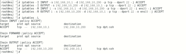 iptables -I OUTPUT -s 192.168.10.20 -d 192.168.10.0/24 -p tcp --sport 22 -j ACCEPT 出
