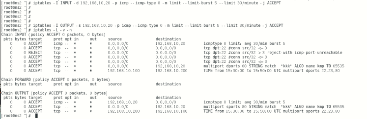 iptables -I OUTPUT -s 192.168.10.20 -p icmp --icmp-type 0 -m limit --limit-burst 5 --limit 30/minute -j ACCEPT