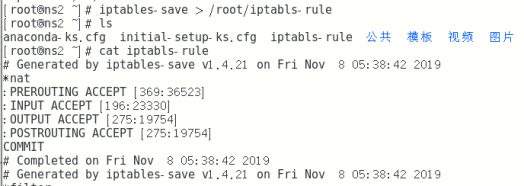 iptables-save > /root/iptabls-rule 将规则保存至/root/iptabls-rule