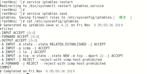 service iptables save(centos-6) (相当于iptables-save > /etc/sysconfig/iptables)