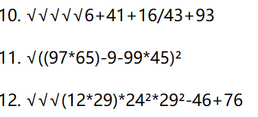 2. 对于括号和根号的生成仅在第一个操作数前,且可能出现多个重复根号的情况,符合要求,但感觉有些不规范。