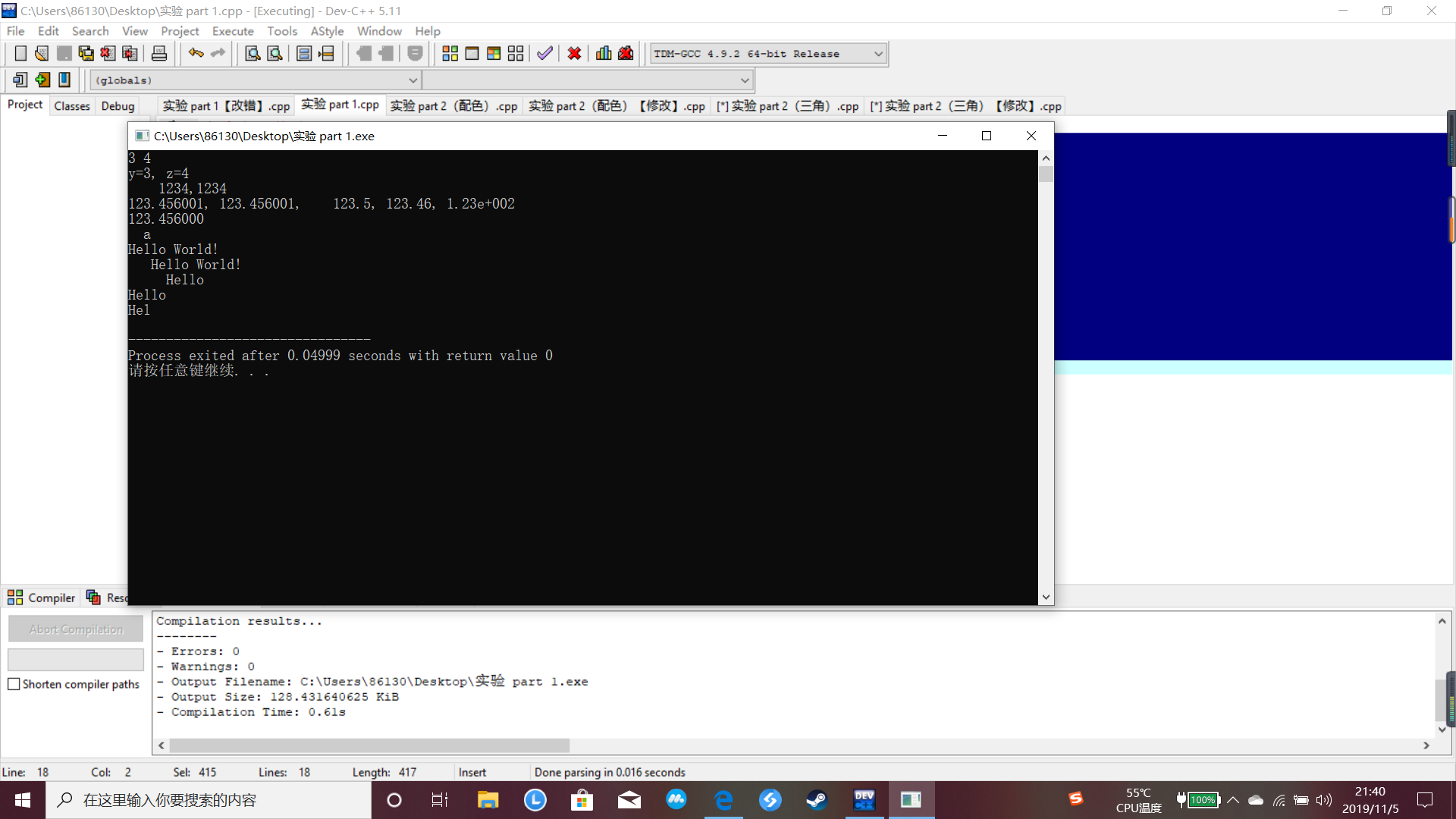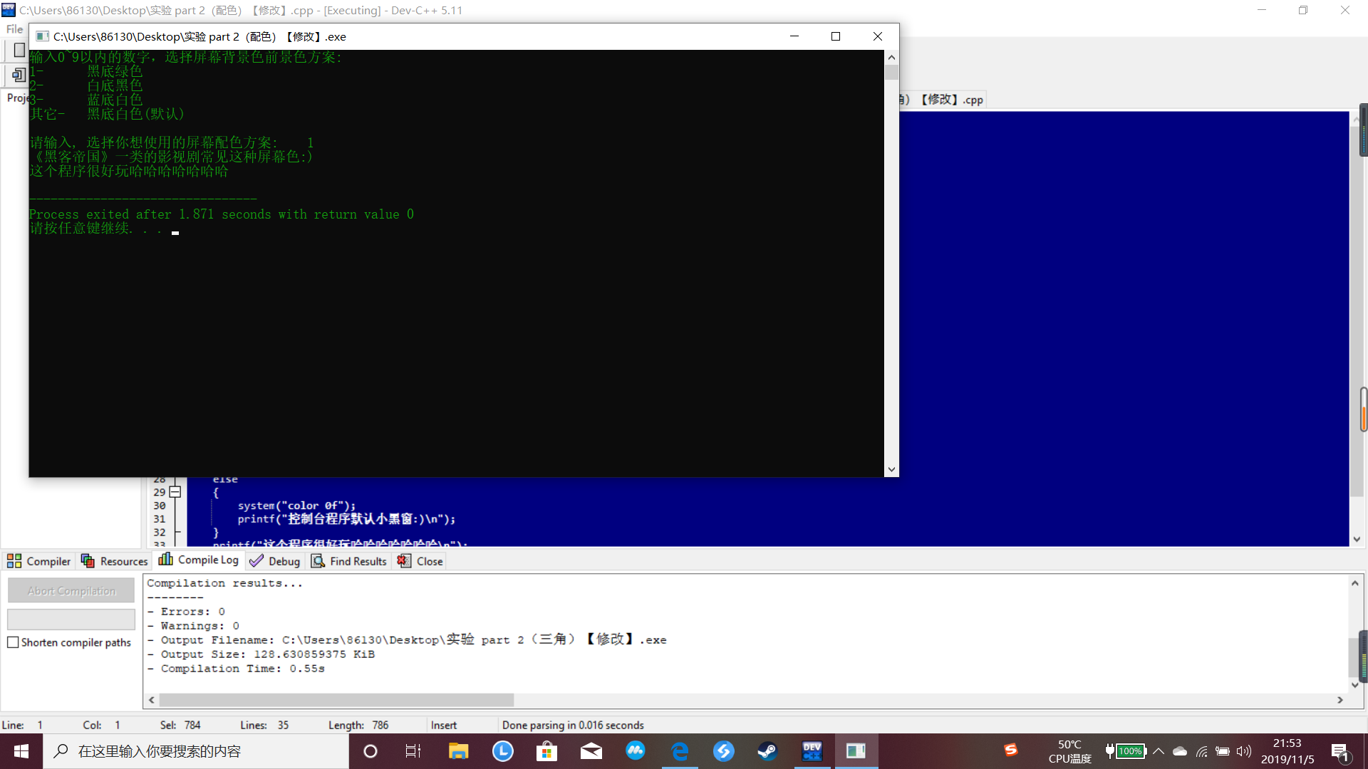 printf("输入0~9以内的数字,选择屏幕背景色前景色方案: \n");