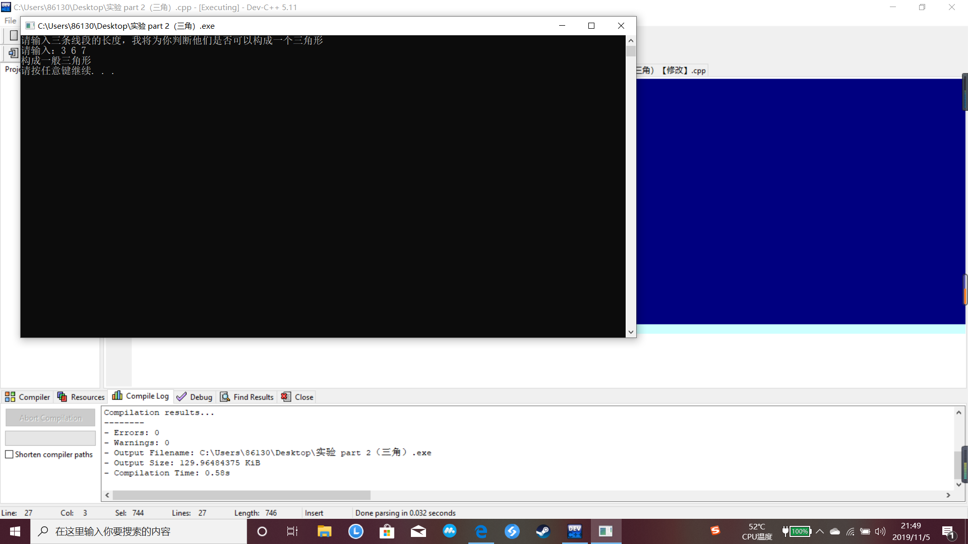 printf("请输入三条线段的长度,我将为你判断他们是否可以构成一个三角形\n请输入:");