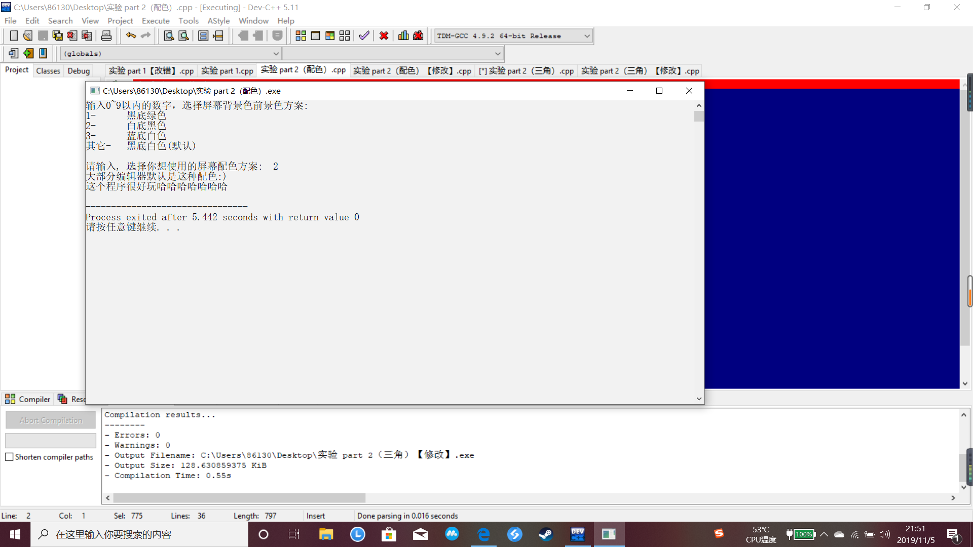printf("这是机器蓝屏故障时的不讨喜色:)\n");