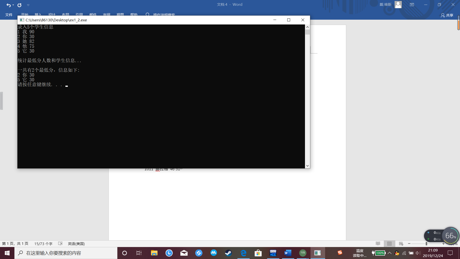 printf("\n一共有%d个最低分,信息如下:\n", count);