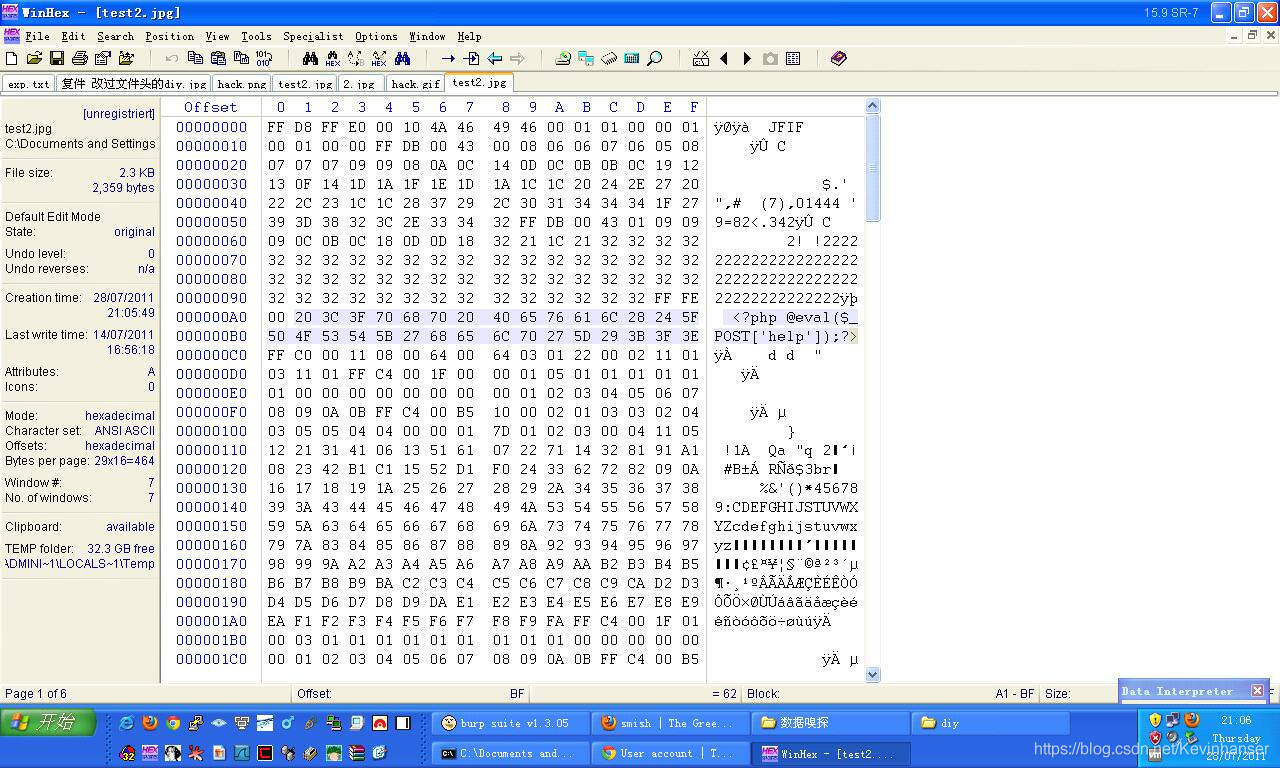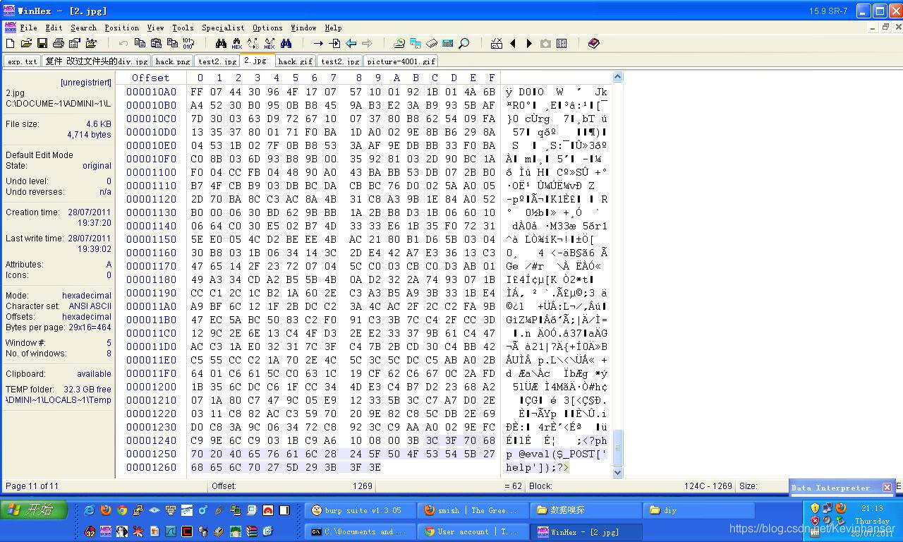 然后在文件幻数后面加上自己的一句话木马代码就行了,可以在文件结尾加上格式特有后缀
