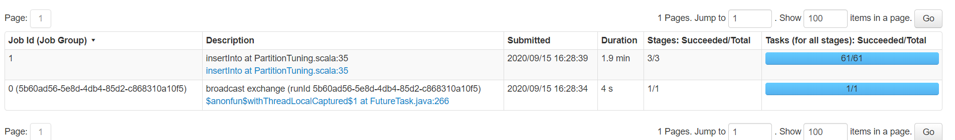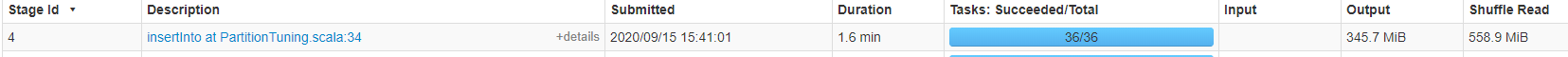 解决小文件过多问题也非常简单,在spark当中一个分区最终落盘形成一个文件,那么解决小文件过多问题只需将分区缩小即可。在插入表前,添加coalesce算子指定缩小后的分区个数。那么使用此算子需要注意,coalesce算子缩小分区后那么实际处理插入数据的任务只有一个,可能会导致oom,所以需要适当控制,并且coalesce算子里的参数只能填写比原有数据分区小的值,比如当前表的分区是200,那么填写参数必须小于200,否则无效。当然缩小分区后任务的耗时肯定会变久。