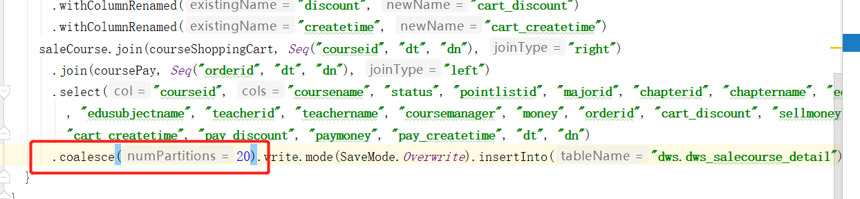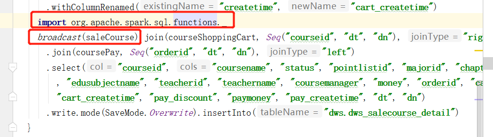 val saleCourse = sparkSession.sql("select *from dwd.dwd_sale_course")